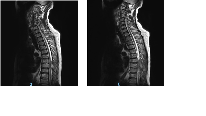 Bệnh nhân nam,69 tuổi nhập viện vì đau từ ngang ngực xuống 2 chân và yếu 2 chân, bệnh tiến triển bán cấp. Qua thăm khám ghi nhận: