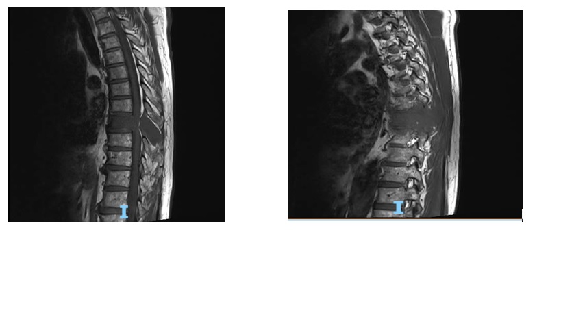 Chẩn đoán vị trí: bệnh lý tủy do chèn ép: chiều dọc-cột sống ngực T8, chiều ngang- cắt ngang tủy không hoàn toàn