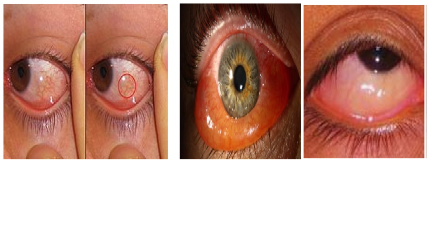- Phồng rộp kết mạc (chemosis): là một dấu hiệu của kích thích mắt. Bề mặt bên ngoài của mắt (kết mạc) trông giống như một vết phồng rộp lớn (big blister), như có chất lỏng trong đó. Khi nghiêm trọng, mô sưng lên BN không thể nhắm mắt